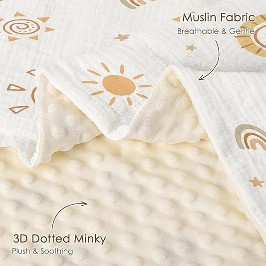 Sun Baby Blankets for Boys Girls, Soft Nursery Minky Blankets with Muslin and Dotted Fleece Back 30x40 inches, Receiving Bed Quilt for Newborn, Infants, Toddlers