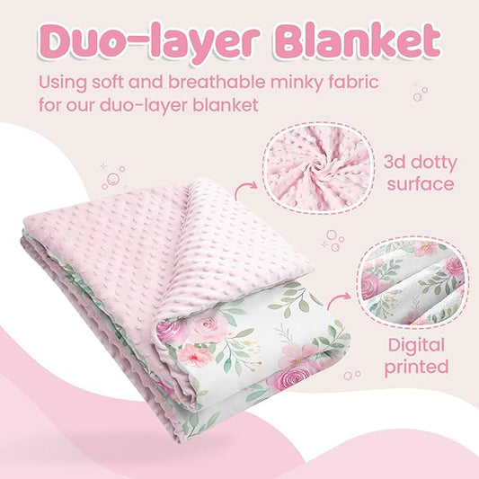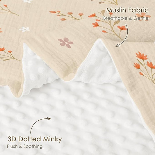 Floral Baby Blankets for Girls, Soft Nursery Minky Blankets with Muslin and Dotted Fleece Back 30x40 inches, Receiving Bed Quilt for Newborn, Infants, Toddlers