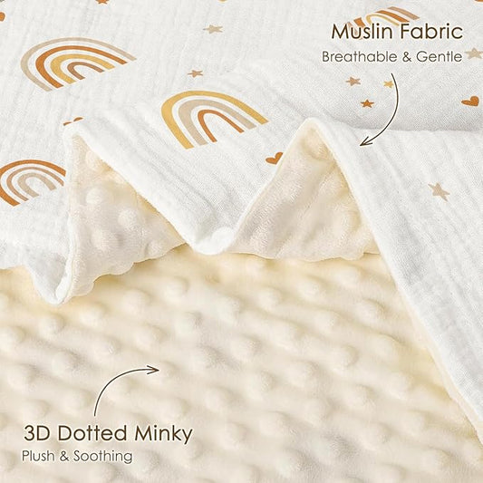 Rainbow Baby Blankets for Girls, Soft Nursery Minky Blankets with Muslin and Dotted Fleece Back 30x40 inches, Receiving Bed Quilt for Newborn, Infants, Toddlers