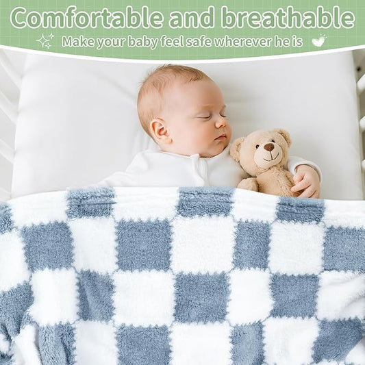 Checkered Baby Blanket for Boys, 2 Pack Soft Baby Boy Blankets, Small 28 x 40 inches Toddler Fleece Blanket, Essentials Crib Stroller Items, Newborn Gift (Blue)