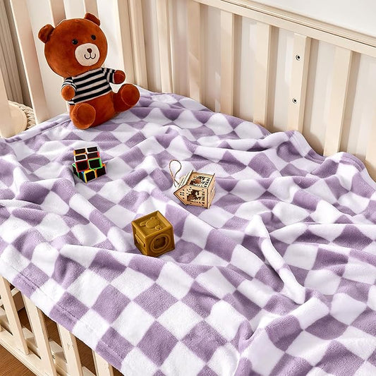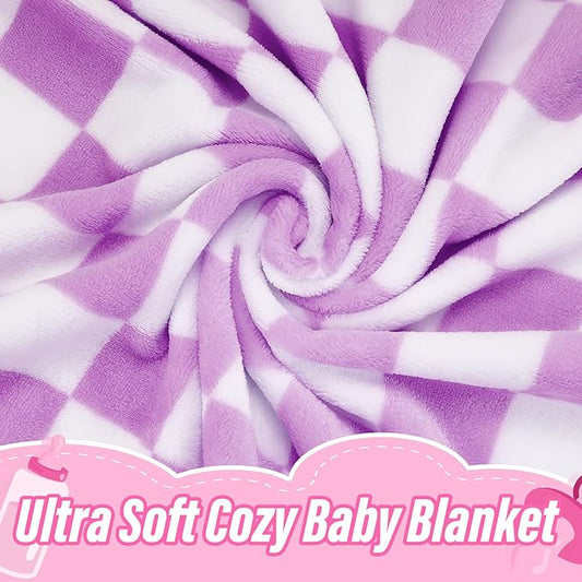 Yurhap Checkered Baby Blanket Fleece Baby Blankets for Girls, Ultra Soft Cozy Fluffy Infant Toddler Newborn Receiving Blankets for Crib Stroller, 30''x40'', Purple