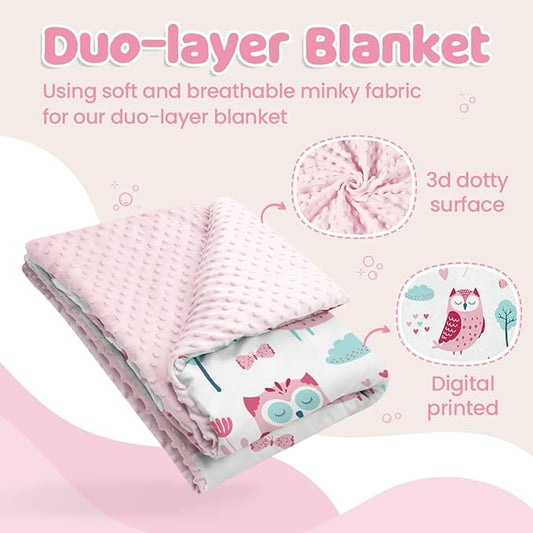 Owl Kid Blanket for Girl - Soft Kids Throw Minky Blankets with Dotted Backing for Girls - Kids Nursery Crib Blanket 30x40
