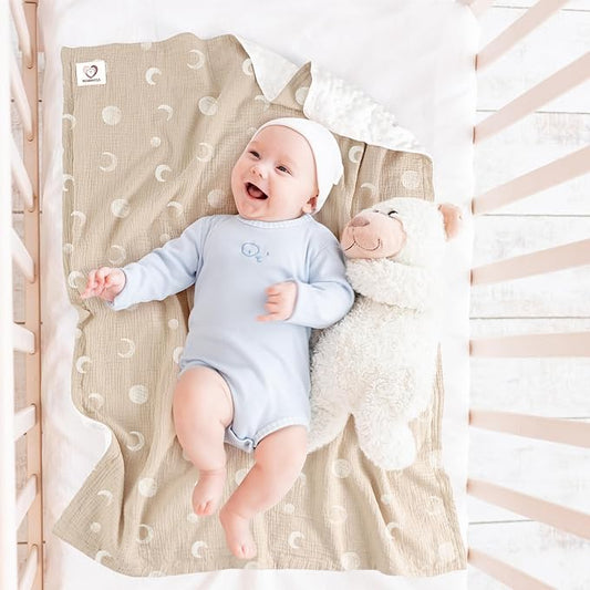Bearmoss Baby Blankets for Unisex Boys Girls, Soft Nursery Crib Blankets with Muslin Cotton Front and Dotted Fleece Back for Newborns Toddlers 30x40inch (Desert Crescent)