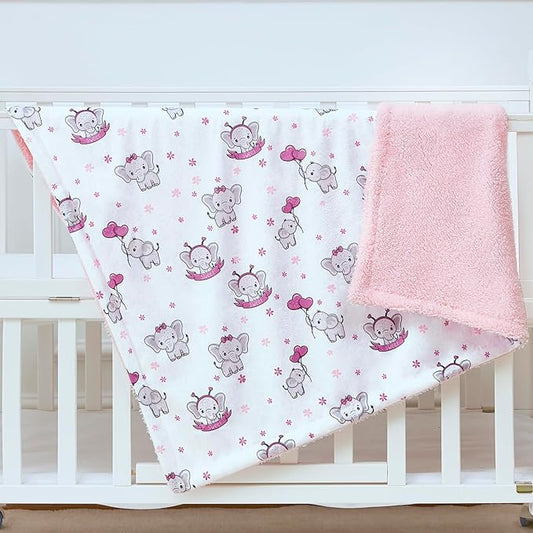 QSTEHEML Baby Blankets for Girls,Super Soft Double Layer Sherpa Blanket Neutral,Baby Gifts Plush Mink Blanket with Furry Binding and Back,Newborn Blankets for Crib(Elephant,30 * 40inch)