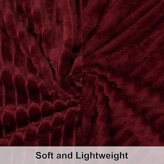 NTBAY Plush Flannel Twin Bed Blanket, 60x80 Inches Soft and Warm Lightweight Bed Blanket with Striped Texture for Couch, Sofa, All Seasons, Wine Red