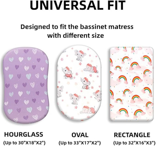 4 Pack Baby Girl Bassinet Sheets Set Soft Fitted Floral or Elephant Theme Baby Girl Mattress Covers Breathable Toddler Bed Sheets for Infant or Newborn Girls (Elephant, Bassinet Sheets)