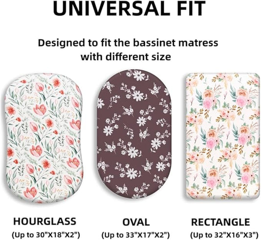 4 Pack Baby Girl Bassinet Sheets Set Soft Fitted Floral or Elephant Theme Baby Girl Mattress Covers Breathable Toddler Bed Sheets for Infant or Newborn Girls (Flower, Bassinet Sheets)