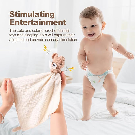 Baby Animal Plush Toy with Rattle, Baby Crochet Teddy Bear Security Blanket, Soothing Toy, Gift for Boys and Girls 12 in