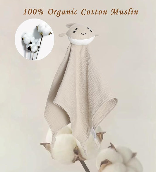 Organic Cotton Muslin Loveys for Babies,Security Blankets for Baby Lovey,Unisex Baby Essentials Neutral,Baby Registry Search,Newborn Baby Gifts for Boys and Girls (Whale Khaki)