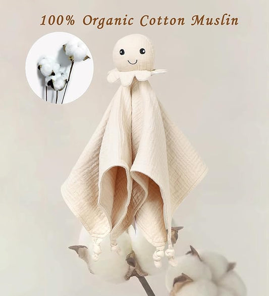 Organic Cotton Muslin Loveys for Babies,Security Blankets for Baby Lovey,Newborn Baby Gifts for Boys and Girls (Octopus Khaki)
