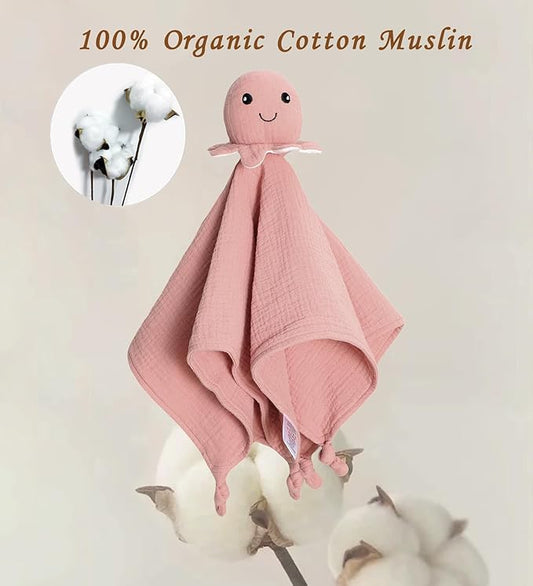 Organic Cotton Muslin Loveys for Babies,Security Blankets for Baby Lovey,Unisex Baby Essentials Neutral,Baby Registry Search,Newborn Baby Gifts for Boys and Girls (Octopus Pink)