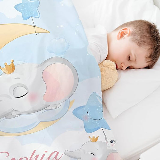 Personalized Elephant Baby Blanket for Boy Girl Custom Name Blanket for Baby Shower Customized Birthday Christmas Newborn Gifts