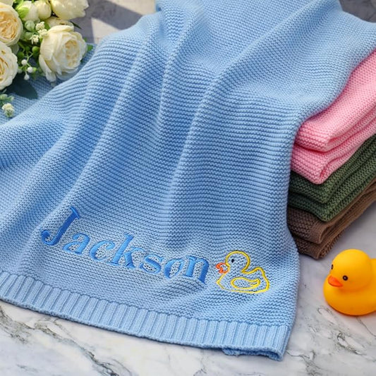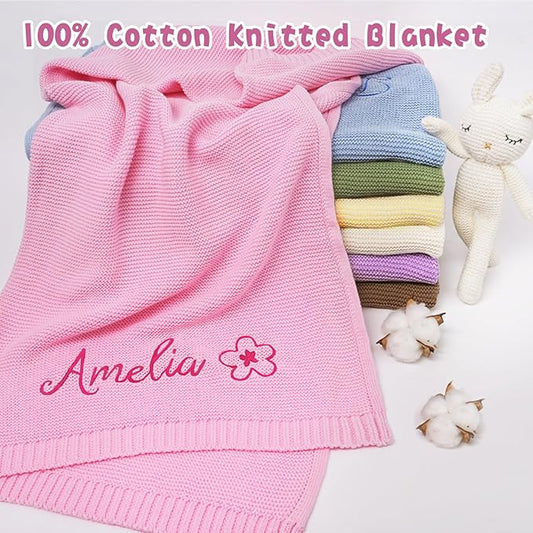 Personalized Baby Blanket - Custom Knit with Embroidery, Monogrammed Baby Name Blanket | Perfect for Baby Showers, Stroller & Car Seat | Gift Idea