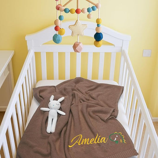 Personalized Baby Blanket with Embroidered Name, Custom Knit Blanket for Girls Boys, 30x40in Customized Baby Receiving Blankets, Personalized Christmas Birthday Baby Newborn Gifts (Brown)
