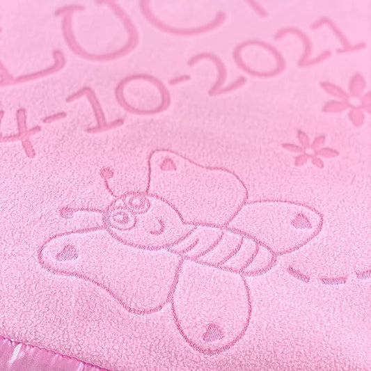 Custom Catch Personalized Girl Pink Baby Blanket Gift with Flower, Ladybug, Bee or Butterfly