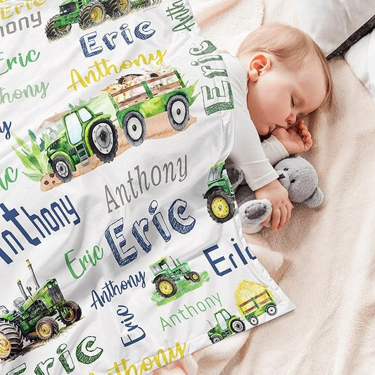Personalized Blanket for Boy Newborn Custom Tractor Baby Blanket with Name Customized Gift for Baby Shower Christmas Birthday Gifts