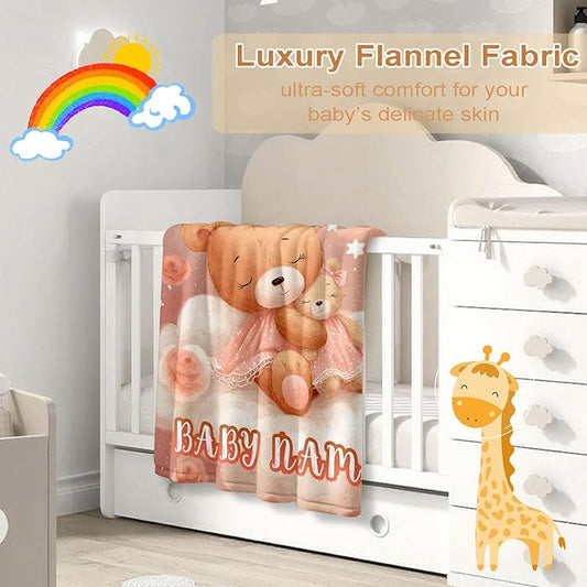 Ships from The US, Personalized Baby Blanket with Girl, Custom Baby Blanket for Kids Soft Flanne Blankets in Easter Personalized Baby Gifts for Infant Newborn Shower (Rose Pink)