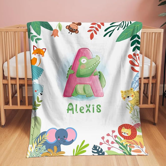 Personalized Baby Blanket with Name, Custom Name Blanket for Kids Soft Flanne Blankets in Easter Personalized Baby Gifts for Infant Newborn Shower (Alphabet)
