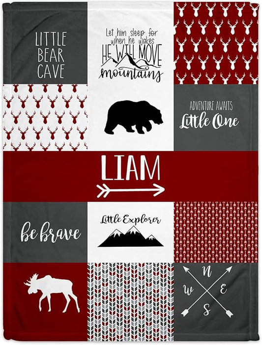 Girls Love A Monogram Red Woodland Personalized Throw Blankets for Boys - Red Personalized Throw Blanket - Custom Kids Blankets for Boys - Baby Stuff - Nursery Décor
