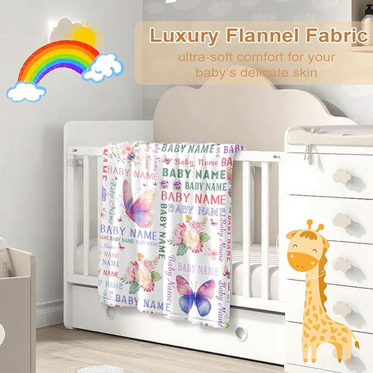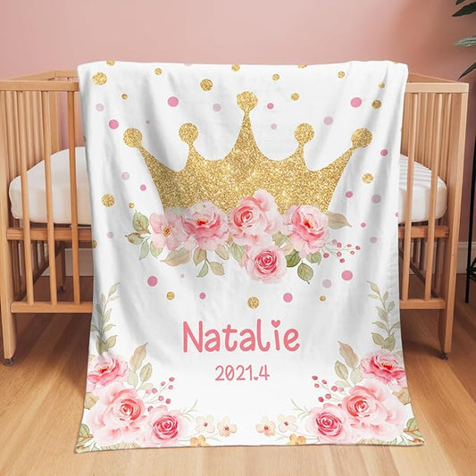 Ship Next Day, Custom Blanket with Name - Printed in USA, Personalized Baby Blankets for Girls, Ultra-Soft Cozy Fleece Blankets, Christmas Birthday Gifts for Boys & Girls Kids Teen Girl