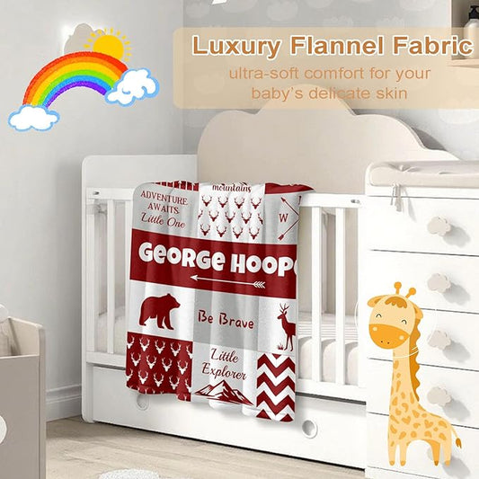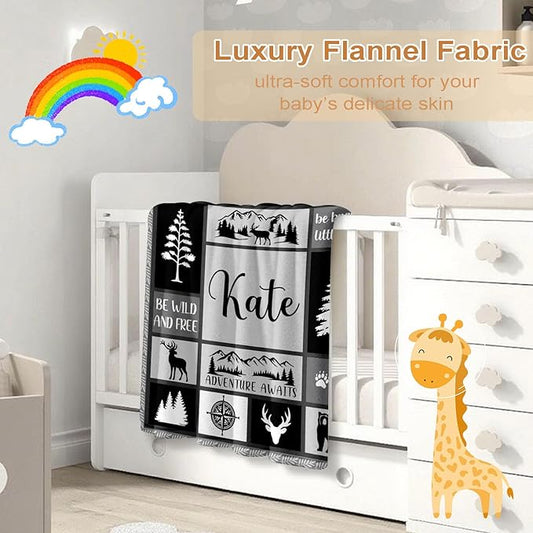 Personalized Deer Kids Blankets for Boys with Name - Kids Boy Throw Blankets Newborn Soft - Custom Throw Blankets for Boys - Deer Baby Blanket