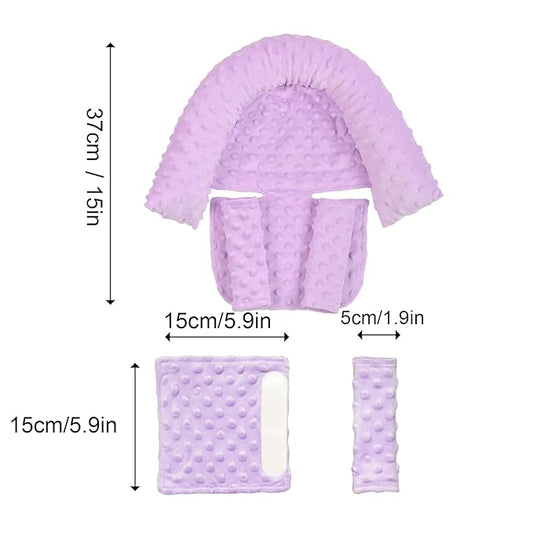 Baby Infant Head and Neck Support Pillow with Seat Belt for Car Seat -Extra Soft 3-in-1 Toddler Car Seat Insert Cushion Pad for Car Seats Purple