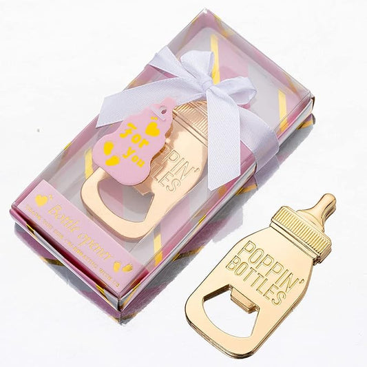 50Pcs Poppin Bottles Bottle Opener Poppin Bottles Baby Shower Favor Gold Baby Shower Bottle Openers Baby Bottle Openers Shower Favors for Guests Gender Reveal Party Wedding Decorations with Green Box