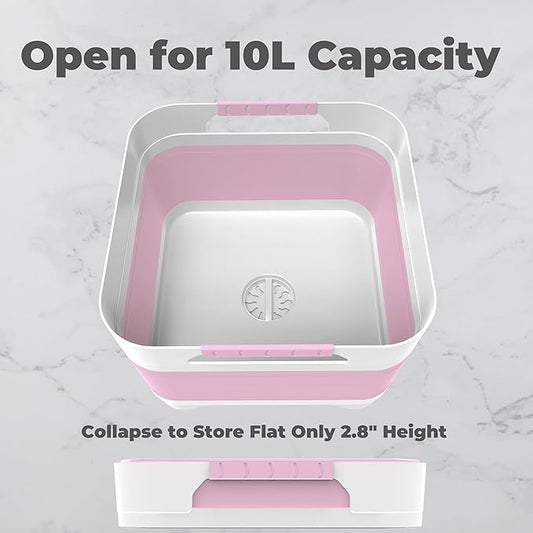 Wash Basin for Baby Bottles, Foldable, Versatile Wash Tub for Kitchen, RV, Outdoor Camping Sink, Sturdy & Easy to Clean, Space Saving Plastic Dish tub (Pink)