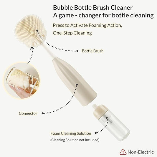 Baby Bottle Brush Kit with Push-Press Bubble and Drying Rack for Bottle Cleaning, Bendable Bottle Cleaner Brush for Baby Bottles, Breast Pumps, Nipples, Straws and More. Perfect for Home&Travel