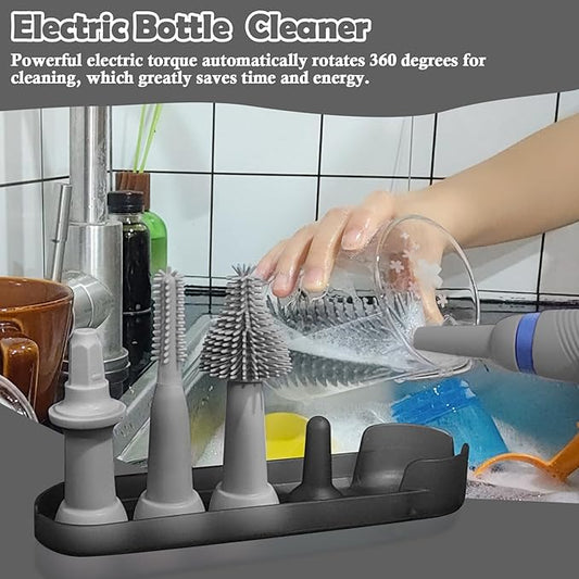Electric Bottle Brush with Stand and Extendable Handle, Silicone Bottle Brush Set, Easy-Grip Silicone Handle, Waterproof/Rechargeable, Grey