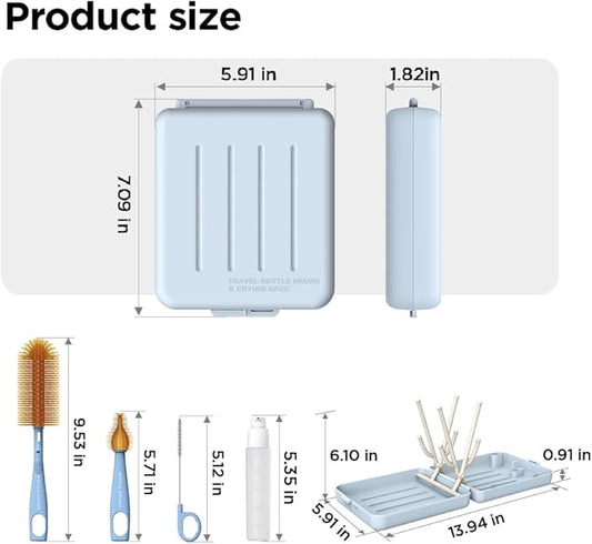 YOTIME Travel Bottle Brush, Travel Bottle Cleaner Kit with Foldable Bottle Drying Rack, for Visit Friends and Relations, Baby Travel Essentials, BPA Free, Blue