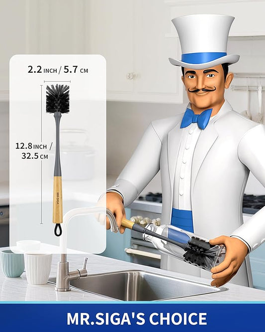 MR.SIGA Water Bottle Brush, Long Handle Bottle Brush for Water Glasses, Baby Bottles, Sports Bottles Cleaning, Gray, 2 Pack