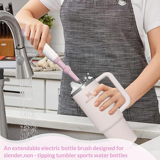 Electric Bottle Brush with Stand and Extendable Handle,Silicone Bottle Brush Set with Water Bottle/Nipple/Straw Brush,Easy-Grip Silicone Handle,Waterproof/Rechargeable Brush, Pink