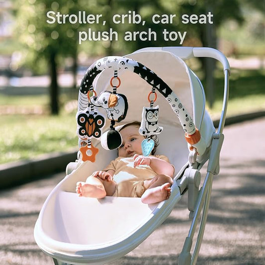 Baby Stroller Arch Toy, Car Seat Toys, Adjustable Arch Stroller toy with Hanging Sensory Activity toys,fits on Baby Bouncer, Bassinet, Stroller, Crib and Car Seats for baby infant Boy Girl 0-18 Months