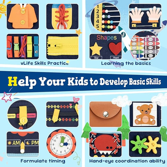 Toddler Busy Board Book Montessori Toys for 1 2 3 4 Years Old,Sensory Board Educational Activities for Learning Fine Motor Skill,Toy for Boy & Girl Birthday Gift,Toddler Toy for Airplane Car Travel
