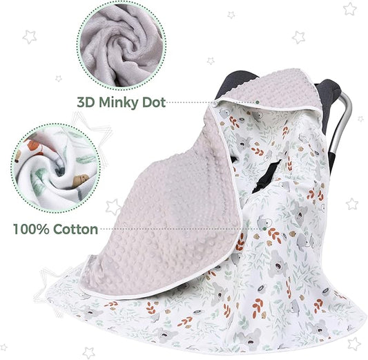 Miracle Baby Car Seat Blanket for Babies, Minky Dot Carseat Swaddle Blankets for Infants Newborn Boys and Girls (Koala)