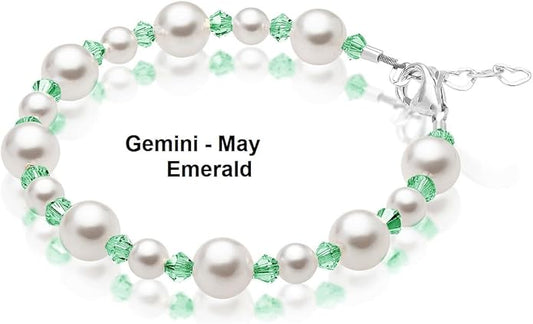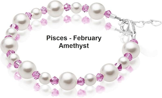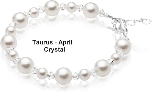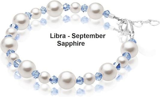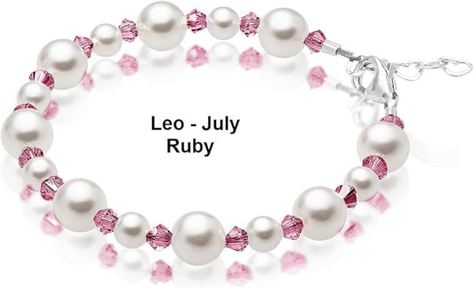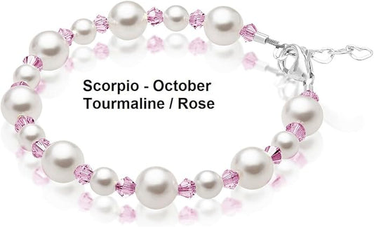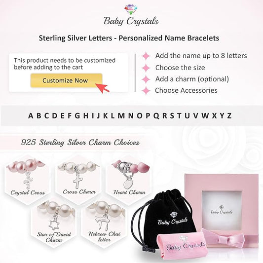 Sterling Silver Initial Charm Personalized Birthstone Bracelets for Girls, Baby Girl, Birthday Gifts for, Newborn, infant, Toddler, Teen, Pearl Bracelet, Birthstone Jewelry Crystals