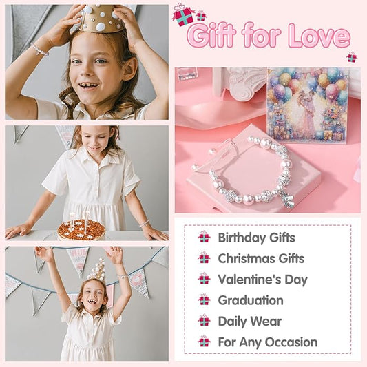 Unicorn Charm Bracelet for Girls - Adjustable Pink Pearl Kids Bracelet for Toddler Girls 4-12 Year Old- Daughter Granddaughter Child's Jewelry Gift for Birthday Christmas gifts