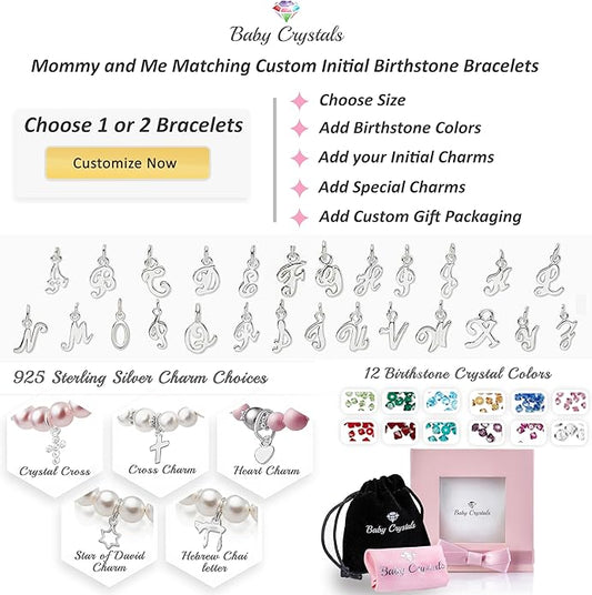Custom Birthstone Bracelet for Kids, Initial Bracelets for Girls, 925 Sterling Silver Personalized Gifts for women, Crystal jewelry, Newborn Baby Girl, infant, Toddler, Teen, Mother, Birthday Gift