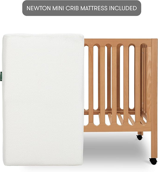 Newton Baby Galileo Mini Crib Solid Beech Wood with Wheels in Chestnut Color, Mini Crib Mattress Included, Adjustable Mattress Height, Ultra-Safe Non-Toxic Finish