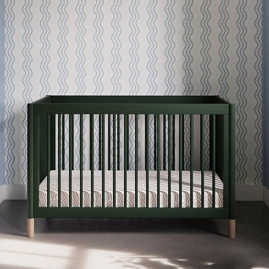 Babyletto Gelato 4-in-1 Convertible Crib with Toddler Bed Conversion in Forest Green with Vegan Blonde Leather Feet, Greenguard Gold Certified