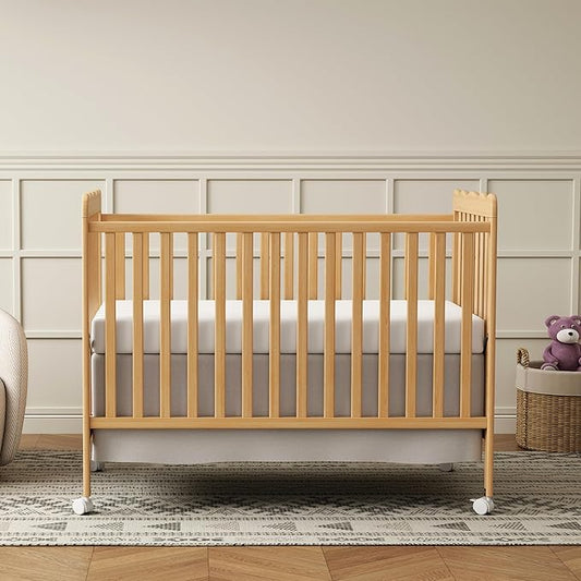 4 in 1 Convertible Baby Crib, Wooden Nursery Cribs Converts into Toddler Bed and Daybed, 3 Adjustable Base, Non-Toxic Finishes, Removable Wheels (Natural)