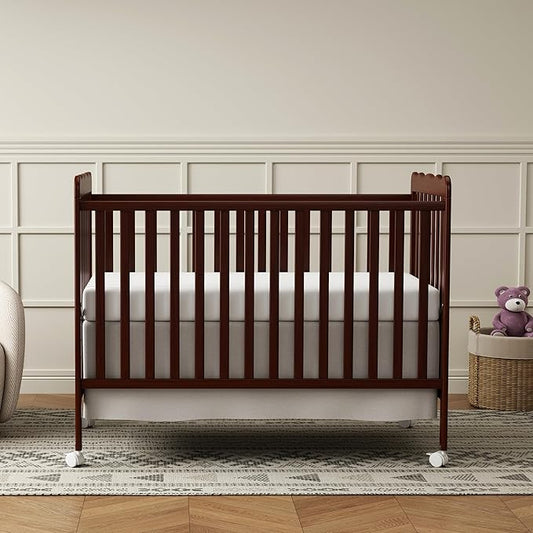 EvoNest Baby Crib, 11 in 1 Convertible Mini Crib with Wheels, 100% New Zealand Wood Growing Bed, 4 Adjustable Mattress Height ,Walnut Brown