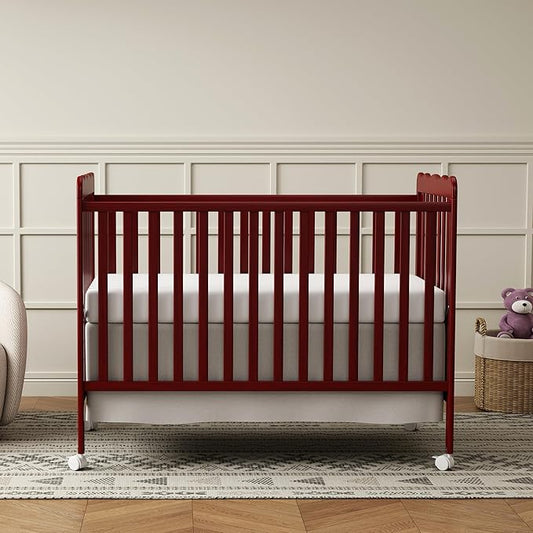 4 in 1 Convertible Baby Crib, Wooden Nursery Cribs Converts into Toddler Bed and Daybed, 3 Adjustable Base, Non-Toxic Finishes, Removable Wheels (Cherry)