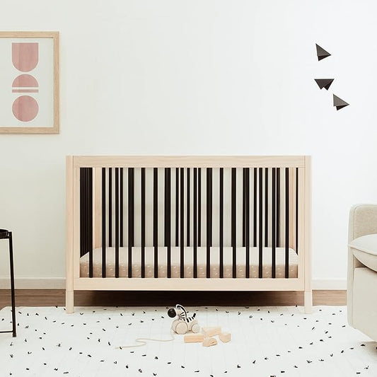 Babyletto Gelato 4-in-1 Convertible Crib with Toddler Bed Conversion in Washed Natural and Black, Greenguard Gold Certified