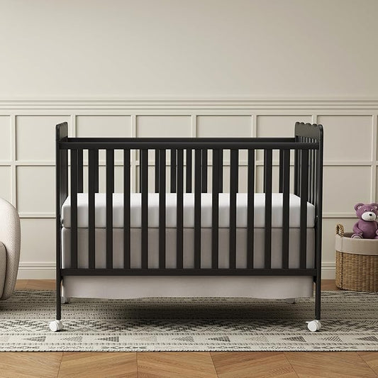 4 in 1 Convertible Baby Crib, Wooden Nursery Cribs Converts into Toddler Bed and Daybed, 3 Adjustable Base, Non-Toxic Finishes, Removable Wheels (Black)
