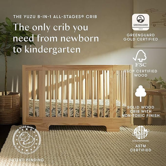 Babyletto Yuzu 8-in-1 Convertible All-Stages® Crib - Conversion Kits for Bassinet, Midi Baby & Full-Size Crib to Toddler Bed, Daybed, and Baby Bed - GREENGUARD Gold Certified - Portable & Adjustable