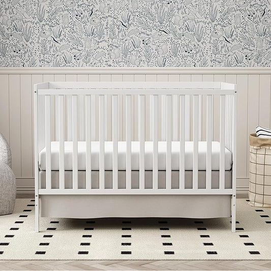 Baby Crib 5-in-1 Convertible, Wooden Nursery Cribs Converts to Toddler Bed, Daybed and Full Size Bed, 3 Adjustable Base, Non-Toxic Finish (White)