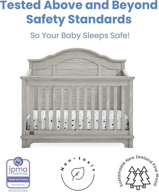 Delta Children Simmons Kids Asher 6-in-1 Convertible Crib with Toddler Rail, Rustic Mist