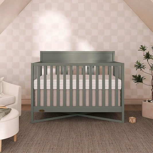 daVinci Charlie 4-in-1 Convertible Crib - GREENGUARD Gold Certified - Converts from Baby Crib to Toddler Bed, Daybed, and Full-Size Bed Effortlessly - 4 Adjustable Heights - Wooden Light Sage Baby Bed